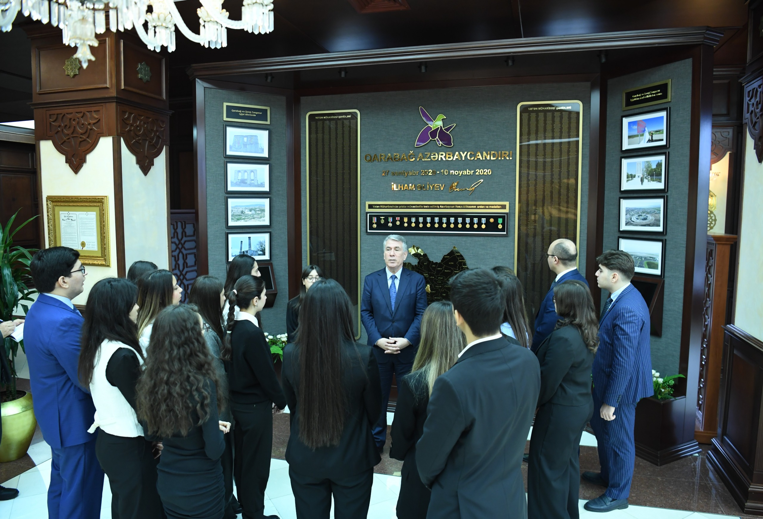 Azərbaycan Respublikasının Prezidenti yanında Dövlət İdarəçilik Akademiyasının tələbələri əvvəlcə müstəqil Azərbaycanın memarı Ulu Öndər Heydər Əliyevin adını daşıyan xatirə zalını ziyarət ediblər. Onlar burada Azərbaycan xalqının Ümummilli Lideri Heydər Əliyevin həyatının və siyasi fəaliyyətinin müxtəlif dövrlərini əks etdirən eksponatlarla tanış olublar.
