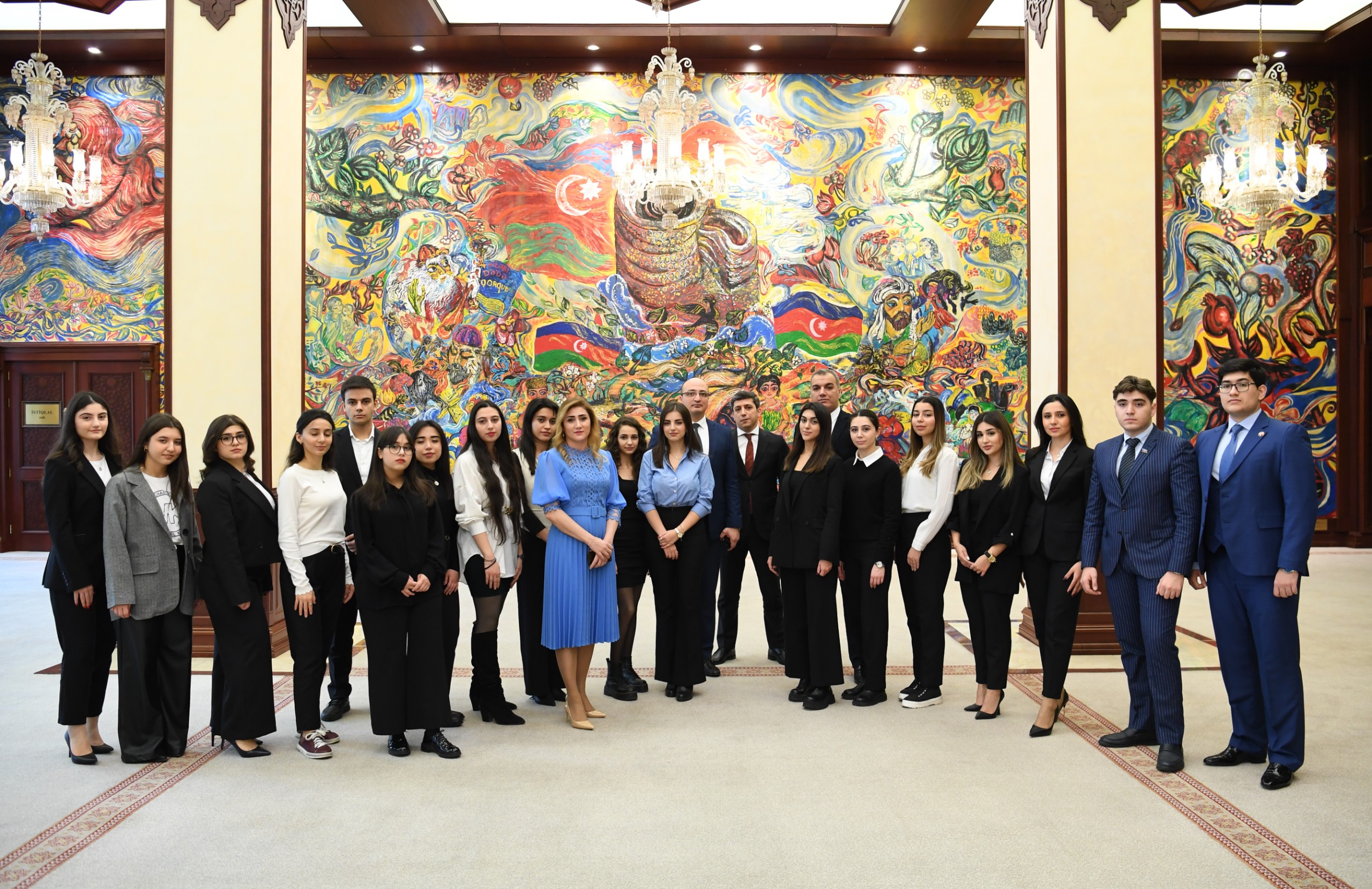 Sonda tələbələr Milli Məclisin İnzibati binasının foyesində Ulu Öndər Heydər Əliyevin abidəsi qarşısında xatirə şəkli çəkdiriblər.