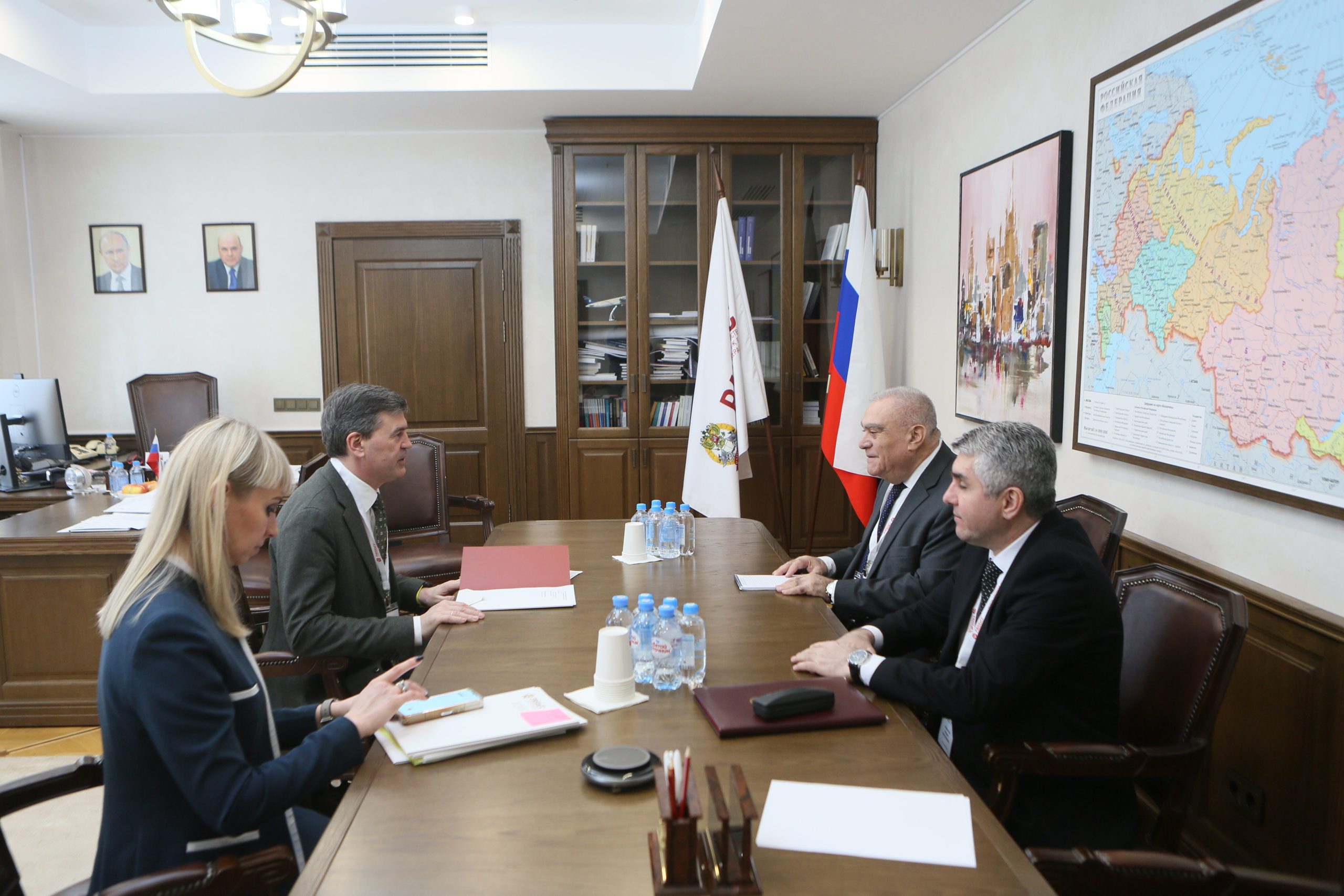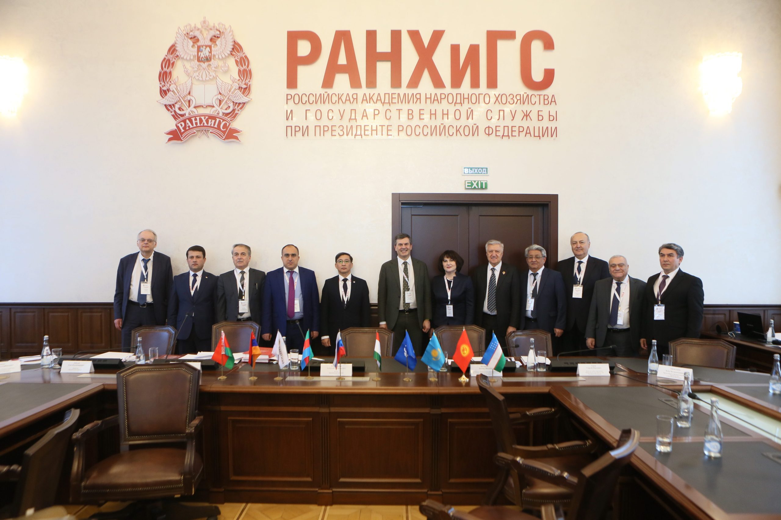 Azərbaycan Respublikasının Prezidenti yanında Dövlət İdarəçilik Akademiyasının rektoru akademik Urxan Ələkbərov və Elmi təşkilat və beynəlxalq əlaqələr şöbəsinin müdiri dosent Elvin Əzizbəyov 26-29 mart 2024-cü il tarixlərində Rusiya Federasiyasının Moskva şəhərində Rusiya Federasiyasının Prezidenti yanında Xalq Təsərrüfatı və Dövlət Qulluğu Akademiyası (РАНХиГС) tərəfindən təşkil olunmuş MDB ölkələrində fəaliyyət göstərən Dövlət İdarəçilik Akademiyalarının birgə forumu və “İdarəçilik sistemində şəxsiyyət” mövzusunda keçirilmiş ənənəvi elmi praktik konfransda iştirak etmişlər. Səfər çərçivəsində Rusiya Federasiyasının Prezidenti yanında Xalq Təsərrüfatı və Dövlət Qulluğu Akademiyası ilə Azərbaycan Respublikasının Prezidenti yanında Dövlət İdarəçilik Akademiyası arasında qarşılıqlılıq prinsipi əsasında akademik mübadilələr, tədris təcrübəsi, birgə elmi tədqiqatlar sahəsində professor-müəllim heyətinin mübadiləsi, dövlət idarəçiliyi üzrə əlavə peşə təhsili sahələrində birgə təhsil və tədqiqat proqramlarının hazırlanması və həyata keçirilməsi, dövlət idarəçiliyi sahəsində birgə tədqiqatların və nəşrlərin həyata keçirilməsi, birgə elmi konfranslar və seminarların təşkili və keçirilməsi ilə bağlı anlaşma memorandumu imzalanmış və rektor akademik Urxan Ələkbərov “İdarəçilik sistemində şəxsiyyət” mövzusunda keçirilən elmi praktik konfransın panel bölmələrində məruzələrlə çıxış etmişdir. Ezamiyyət zamanı Rusiya Federasiyasının Prezidenti yanında Xalq Təsərrüfatı və Dövlət Qulluğu Akademiyasının rektoru və digər MDB ölkələrinin Dövlət İdarəçilik Akademiyalarından dəvət olunmuş bəzi rektorlarla gələcək əməkdaşlıq imkanları və perspektivlərlə bağlı müzakirələr aparılmışdır.