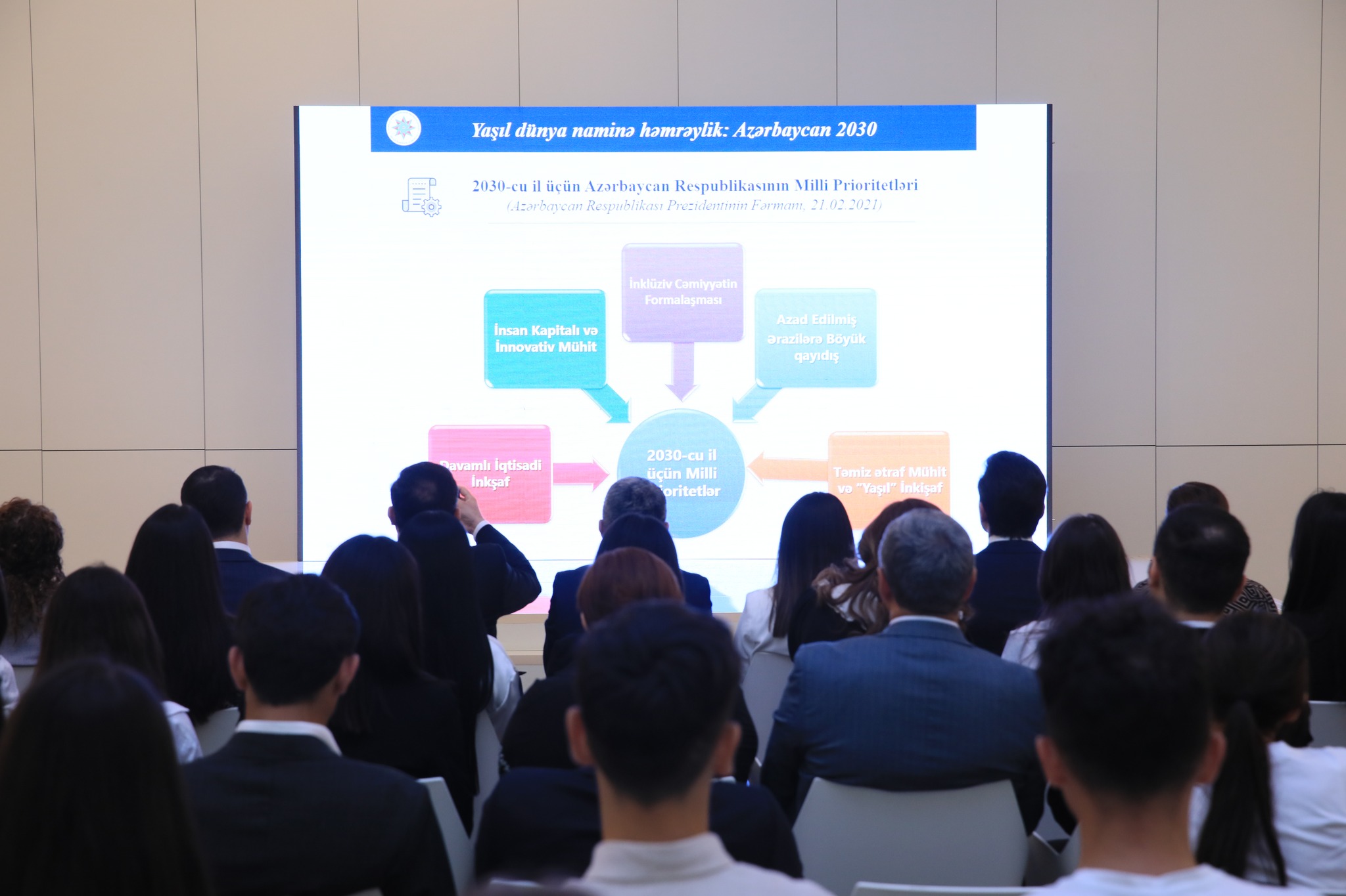 Heydər Əliyev Fondu, Heydər Əliyev Mərkəzi, “Regional İnkişaf” İctimai Birliyi (RİİB), COP29 Azərbaycan Əməliyyat Şirkəti, Media Təhlil Mərkəzinin əməkdaşları və RİİB könüllülərinin iştirak etdiyi təqdimatda Azərbaycan Respublikasının Prezidenti cənab İlham Əliyev və Birinci vitse-prezident, Heydər Əliyev Fondunun prezidenti Mehriban xanım Əliyeva tərəfindən 2004-cü ildən həyata keçirilən çoxşaxəli tədbirlər, peşəkar idarəçilik, ölkəmizin malik olduğu resurslardan və imkanlardan effektiv və səmərəli istifadə sayəsində Azərbaycanın davamlı inkişafı, əhalinin sosial rifahının yüksəldilməsi, iqlim dəyişikliyi təsirlərinin və karbon emissiyasının azaldılmasında əldə olunan nəticələrdən, eləcə də işğaldan azad olunmuş ərazilərdə qısa müddət ərzində görülmüş irimiqyaslı layihələrdən bəhs edilib, mötəbər beynəlxalq təşkilatların, o cümlədən Dünya İqtisadi Forumunun yekunlarına dair müqayisəli göstəricilərə geniş yer ayrılıb.