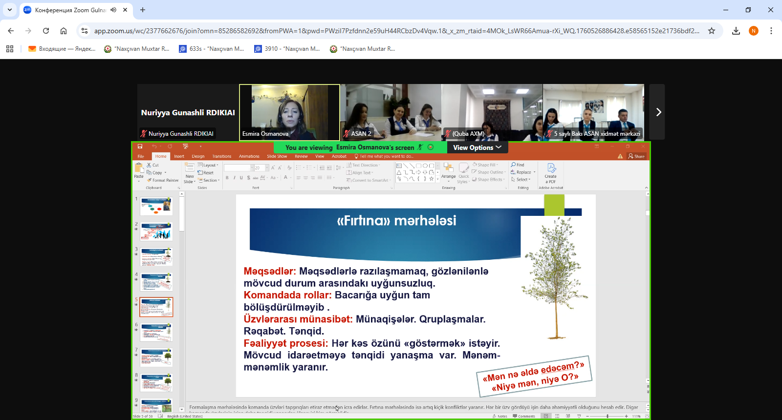 DİA-nın baş müəllimi siyasi elmlər üzrə fəlsəfə doktoru Osmanova Esmira təlimdə çıxış edərək dövlət qulluğunda komanda quruculuğunun əhəmiyyəti, effektiv komanda fəaliyyətinin təşkili və idarə edilməsi mövzularında iştirakçılara ətraflı məlumat verib. O, komanda daxilində məhsuldar əməkdaşlığın əsasını təşkil edən liderlik keyfiyyətləri, inam və qarşılıqlı etimadın formalaşdırılması, habelə strateji məqsədlərə çatmaq üçün düzgün kommunikasiya bacarıqlarının vacibliyini vurğulayıb