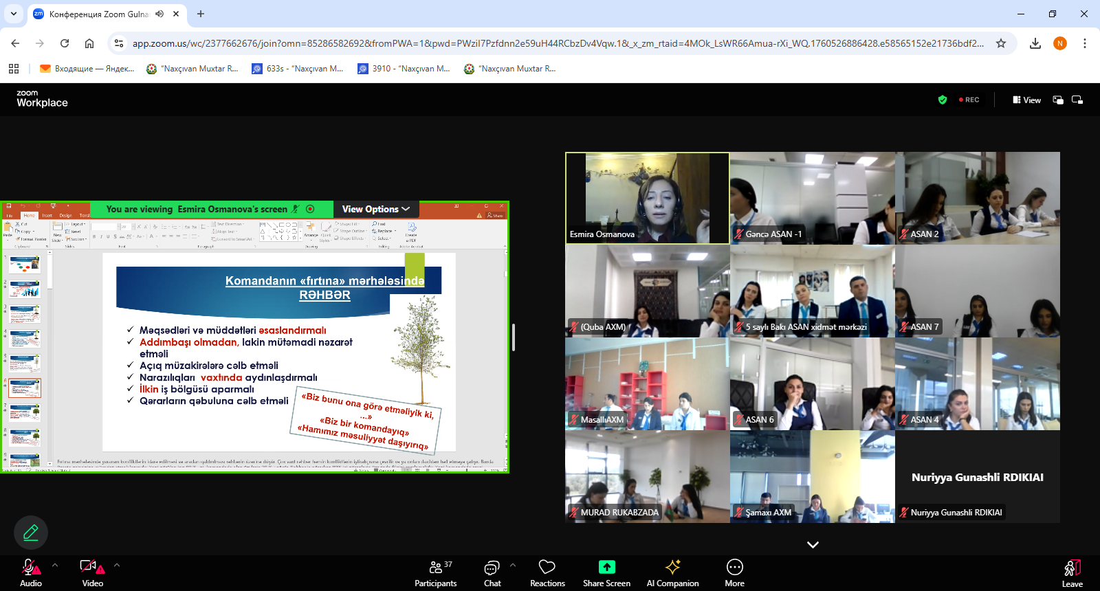 15 oktyabr 2025-ci il tarixində Azərbaycan Respublikasının Prezidenti yanında Dövlət İdarəçilik Akademiyasının təşkilatçılığı ilə “ASAN xidmət” mərkəzlərinin əməkdaşları üçün “Dövlət qulluğunda komanda quruculuğu. Komandada işin təşkili” mövzusunda təlim keçirilib.
